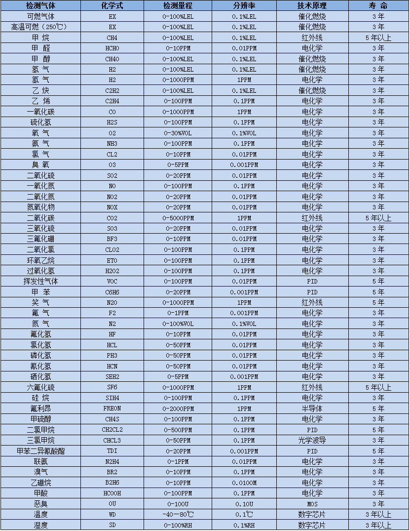 ※另有1000種氣體和量程可選,詳細(xì)請(qǐng)咨詢深國(guó)安銷售人員!